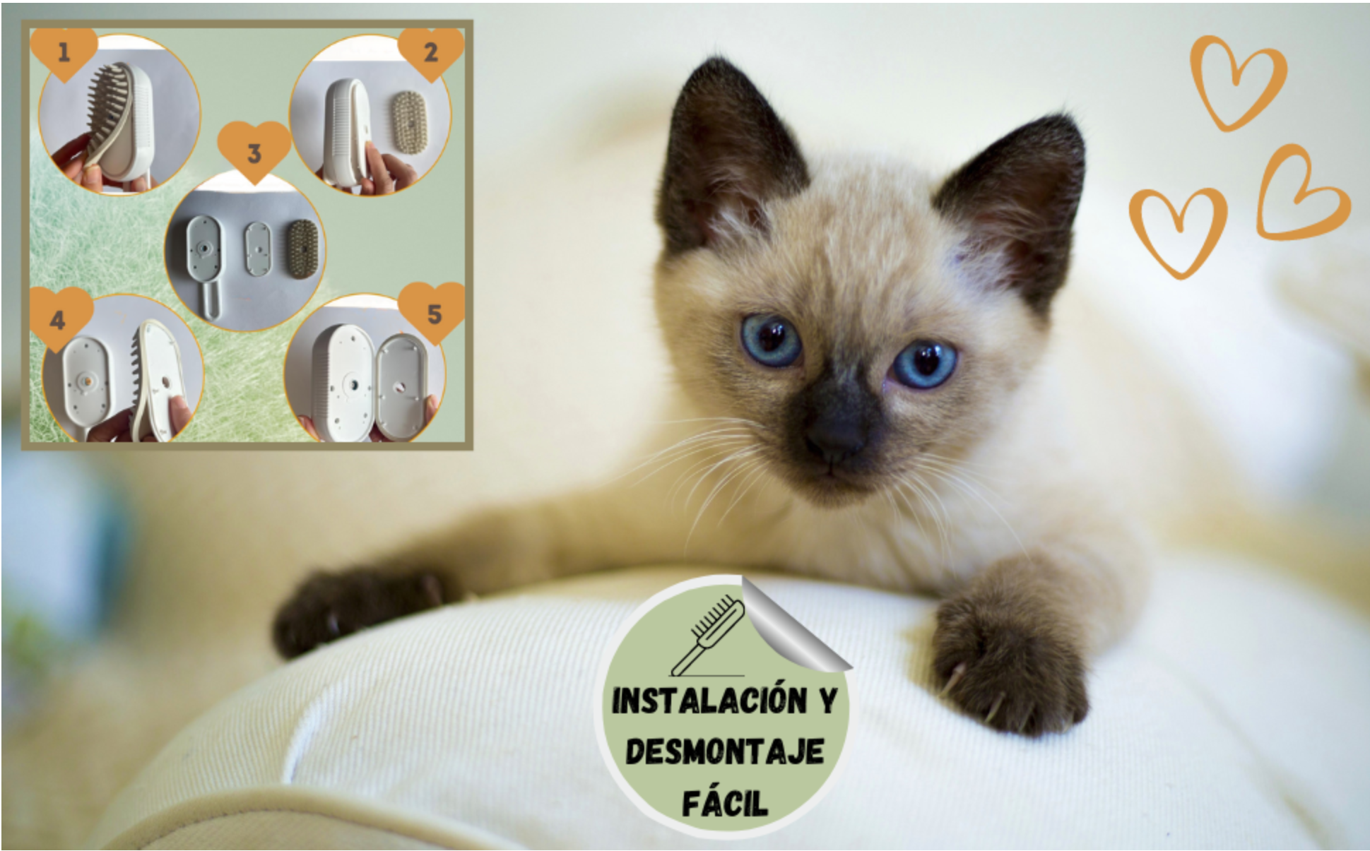 La nostra spazzola a vapore rimuove nodi e peli sciolti dai tuoi animali, migliorando il loro aspetto e la loro salute.